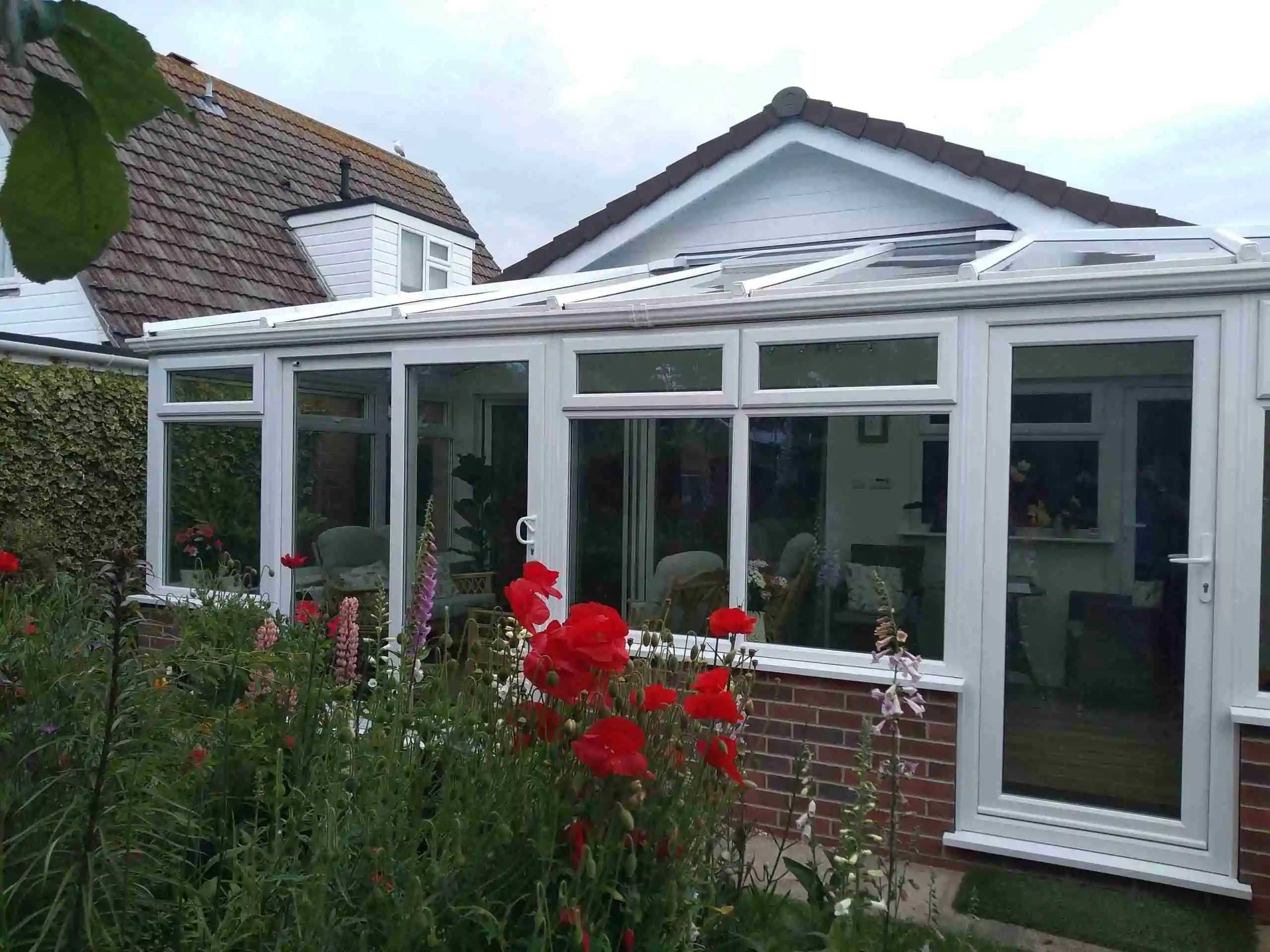 White upvc Lean-to Conservatory by Adam Window Centres, TucktonConservatory at Adam Window Centres, TucktonWhite upvc T-shaped Conservatory by Adam Window Centres, Tuckton
